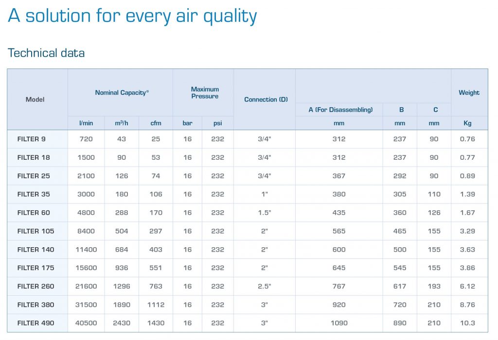 Filter range that eliminates all types of contamination with minimal pressure drop